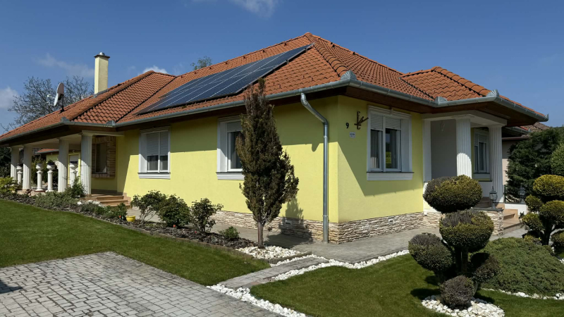 Napelemrendszer,erős hőszigetelés,fedett,nagy teraszon élvezheti új otthonát.
