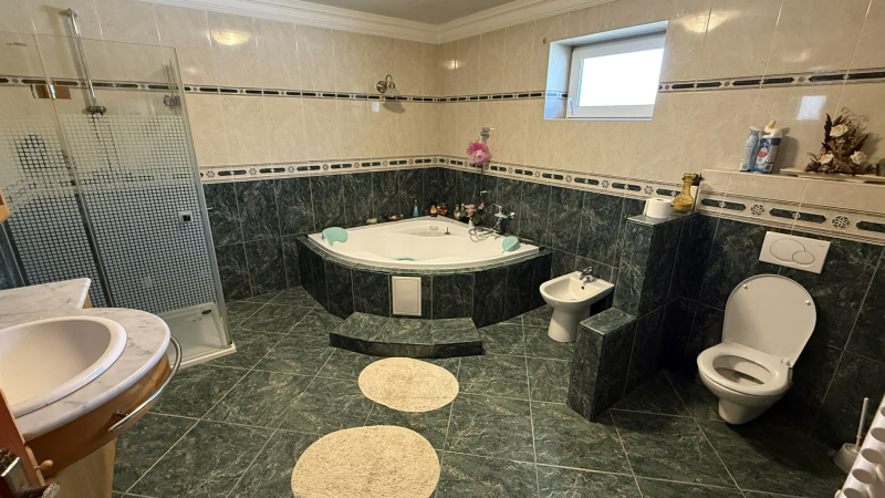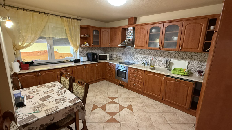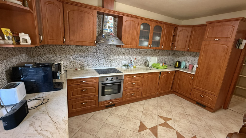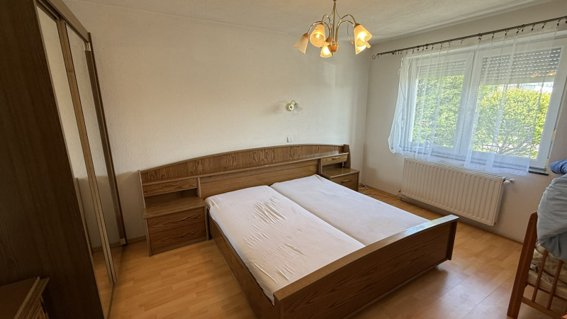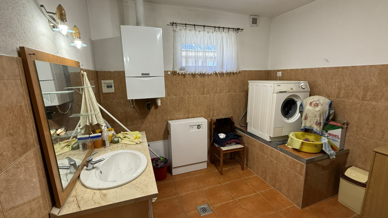 Három tágas,világos hálószoba,kertre néző,gyönyörű nappali étkezővel,modern,gépesített konyha,hatalmas fürdőszoba,mosókonyha,vendég wc is rendelkezésre áll.