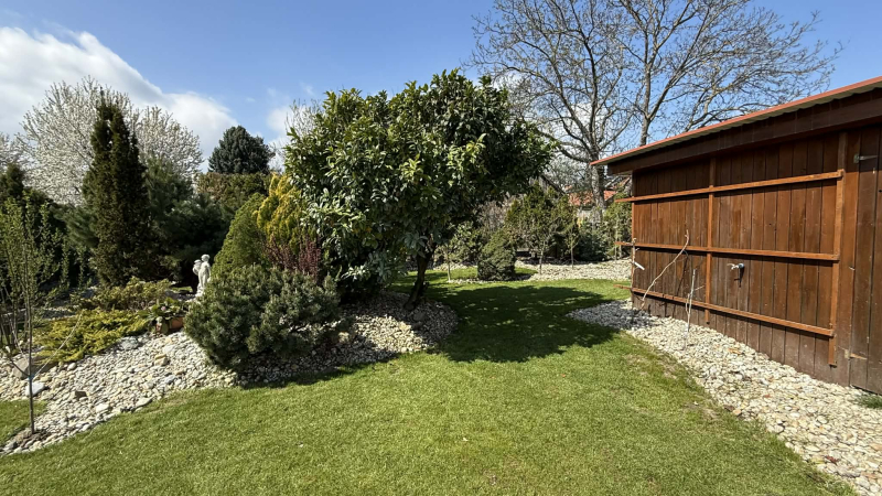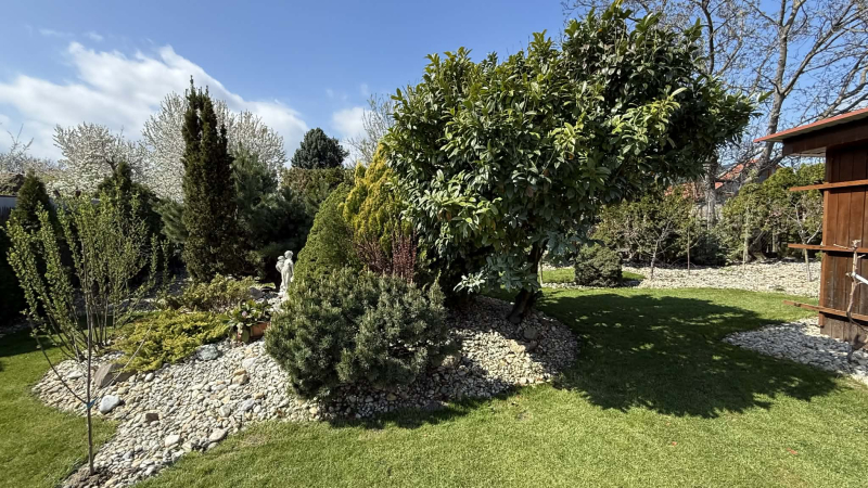 Robotfűnyíró,öntözőrendszer saját esővízkúttal,SAT-rendszer,grillező,cserépkályha,garázs,műhely,fatároló!