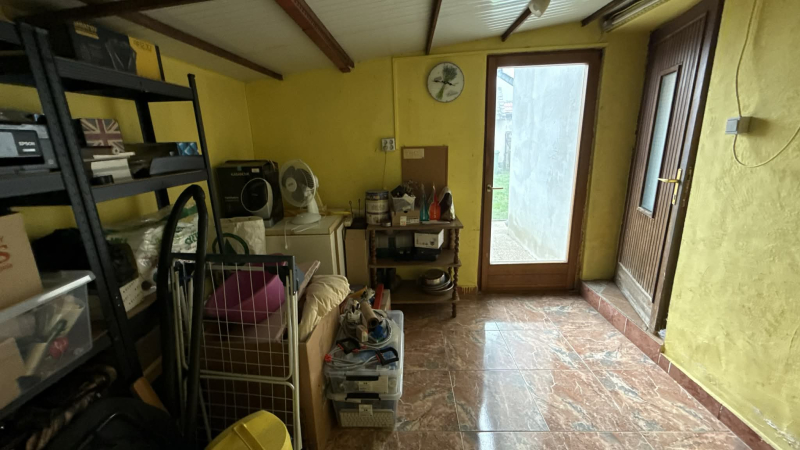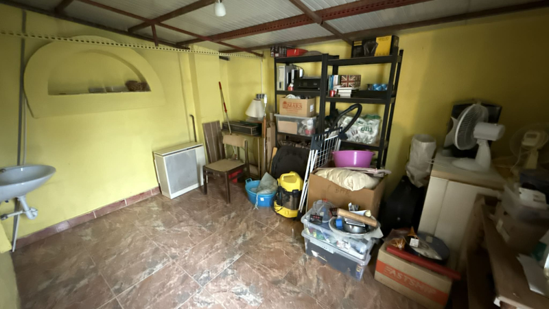 A halóból egy könnyűszerkezetes helyiségbe érkezünk,ami jelenleg tároló,fűtéssel és mosdóval,könnyen átalakítható szobává vagy esetleg irodává is.